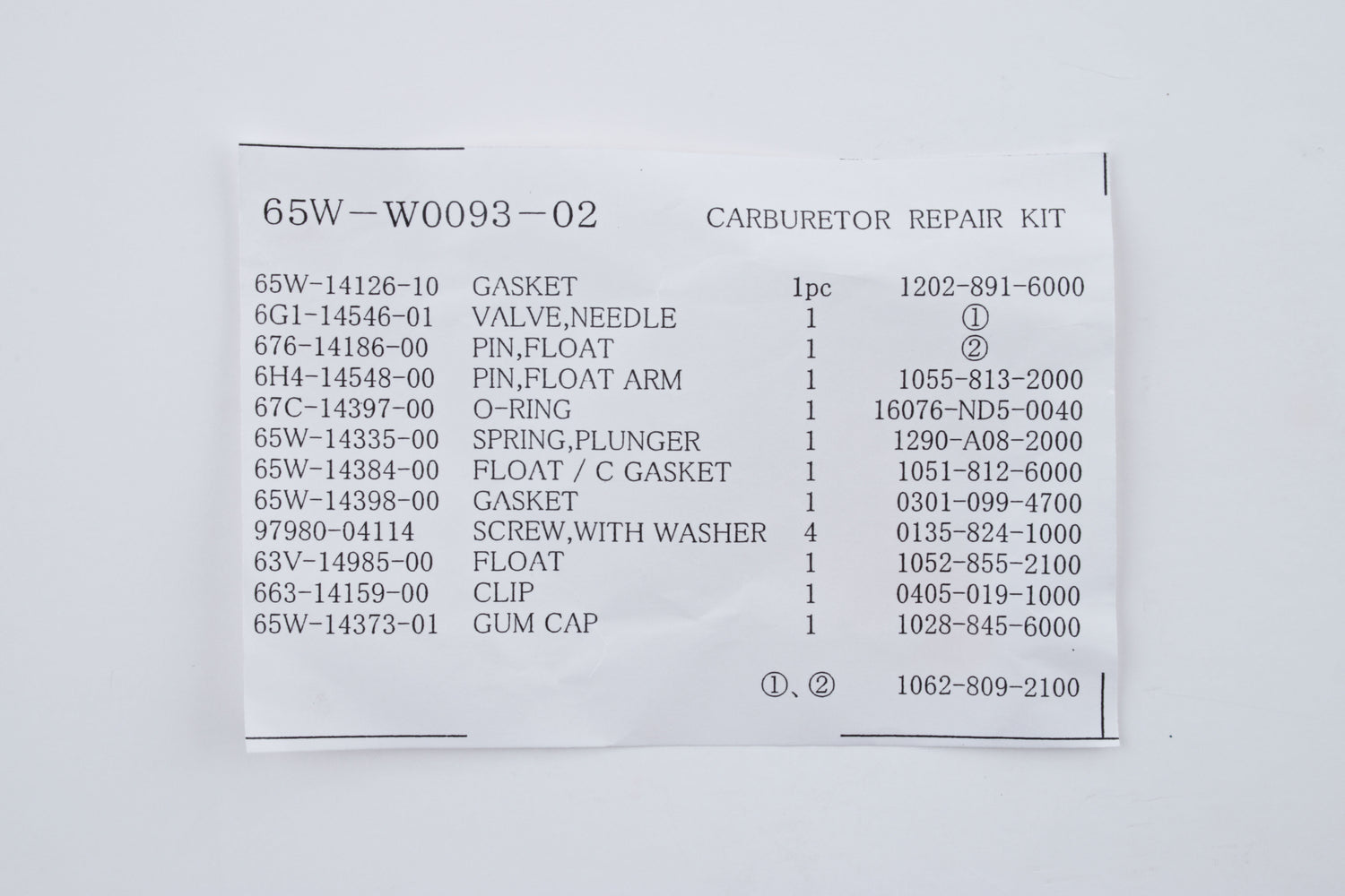 65W-W0093-02-00 - CARBURETOR REPAIR KIT