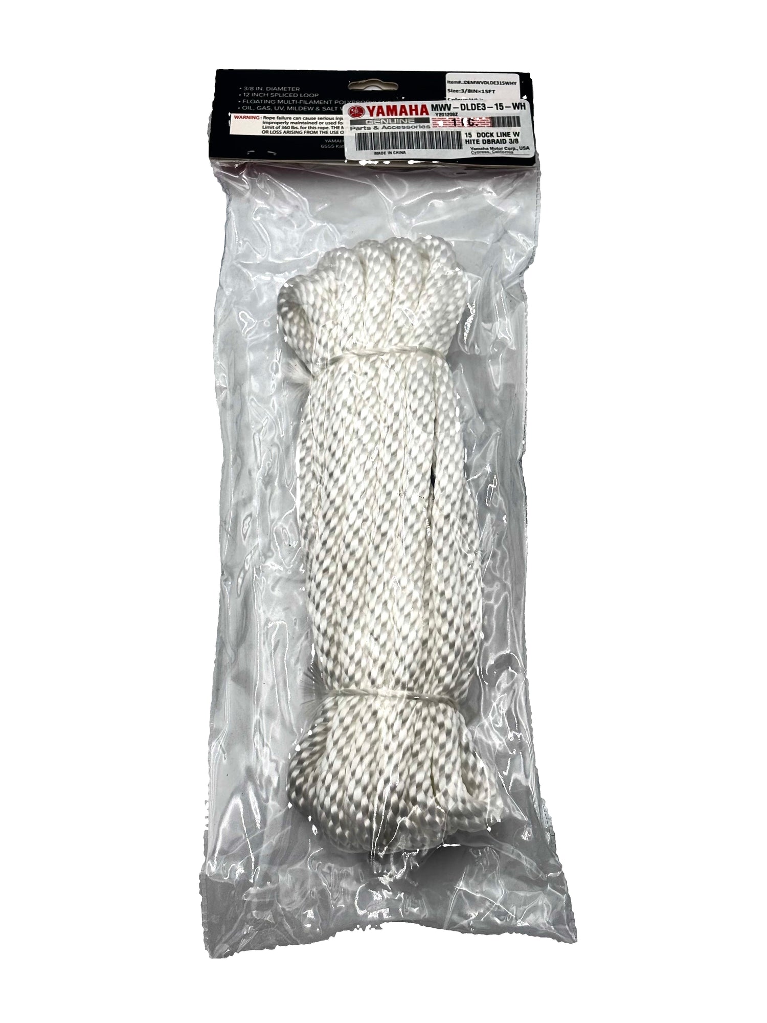 Yamaha MWV-DLDE3-15-WH - 15' Dock Line White Double Braid 3/8